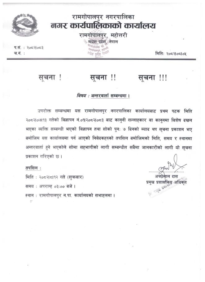 अन्तरवार्ता सम्बन्धमा सूचना !