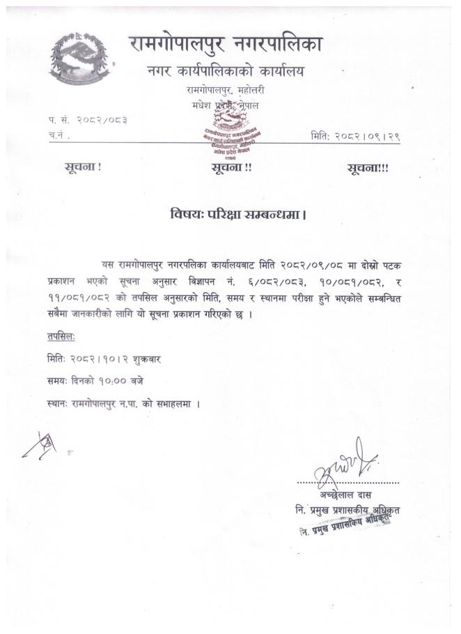 अन्तिम नतिजा प्रकाशन सम्बन्धमा सूचना !