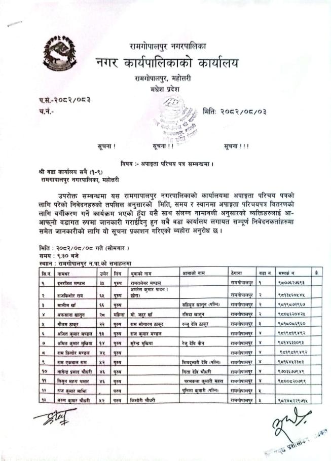 प्रथम पटक प्रकाशित सूचना !