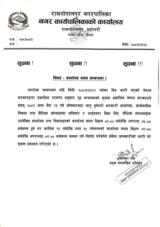 रामगोपालपुर नगरपालिका क्षेत्रभरीको छेउछाउ खाली गराउने सम्बन्धमा सूचना !