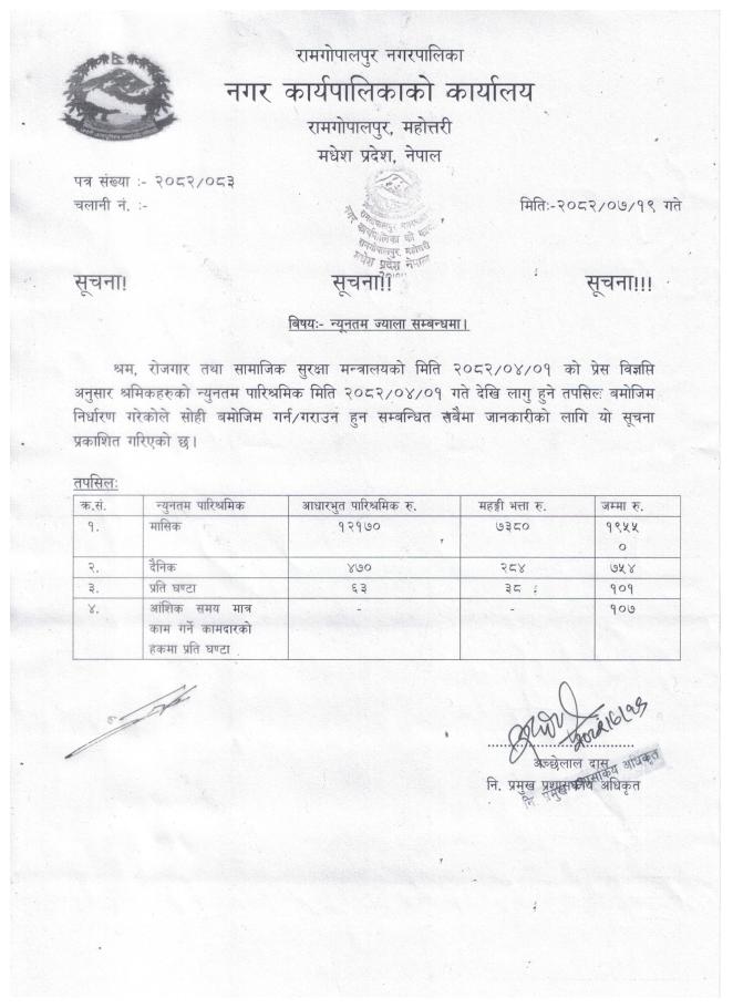 न्युनतम ज्याला सम्बन्धमा सूचना !