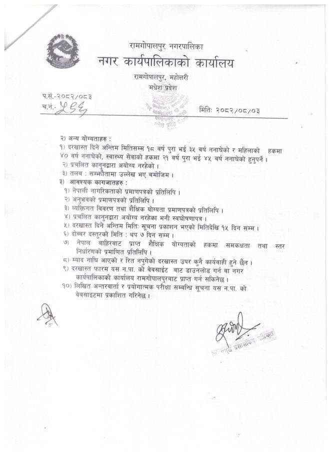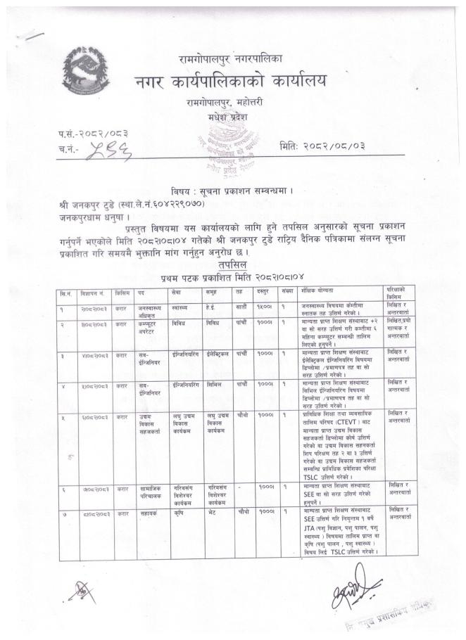 प्रथम पटक प्रकाशित सूचना !