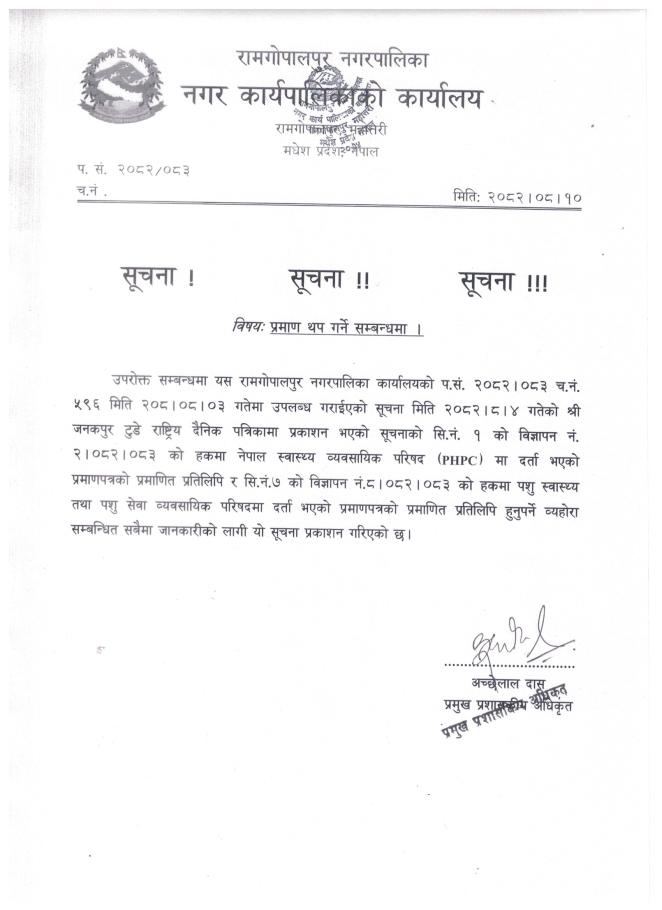 » प्रमाण थप गर्ने सम्बन्धमा ।